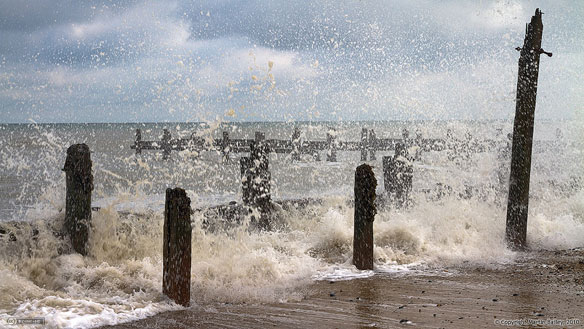 Residents transfixed by huge waves that moved thousands of tonnes of shingles, and permanently destroyed local landmark, and entirely reshaping the beach..