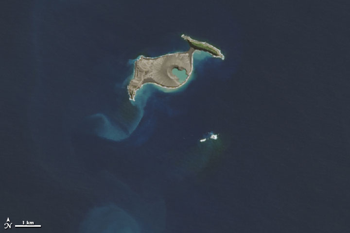 According to a report in January from the Tongan Ministry of Information & Communications, the new island between Hunga Tonga and Hunga Ha’apai rose about 120 meters (390 feet) above sea level.